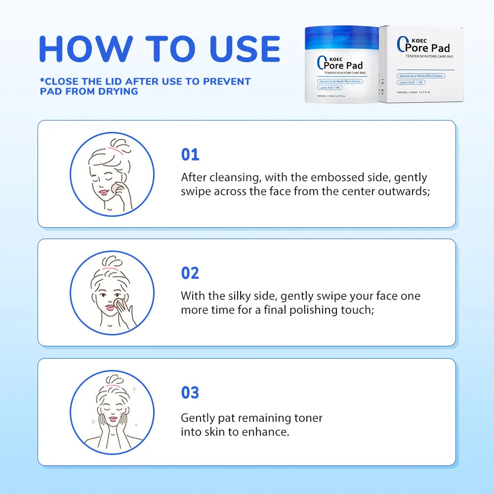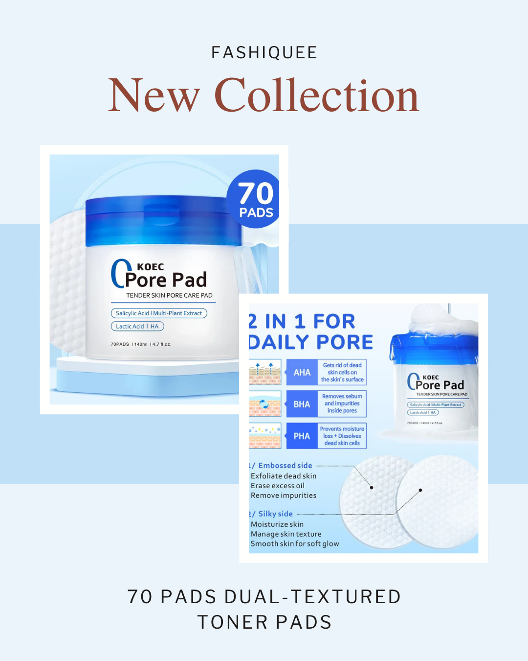 Dual-textured toner pads have two unique surfaces: a textured side to gently exfoliate dead skin and sweep away dirt, and a smooth side to calm and hydrate the skin after treatment. This two-in-one design makes them perfect for cleansing, toning, and prepping skin in one easy swipe.