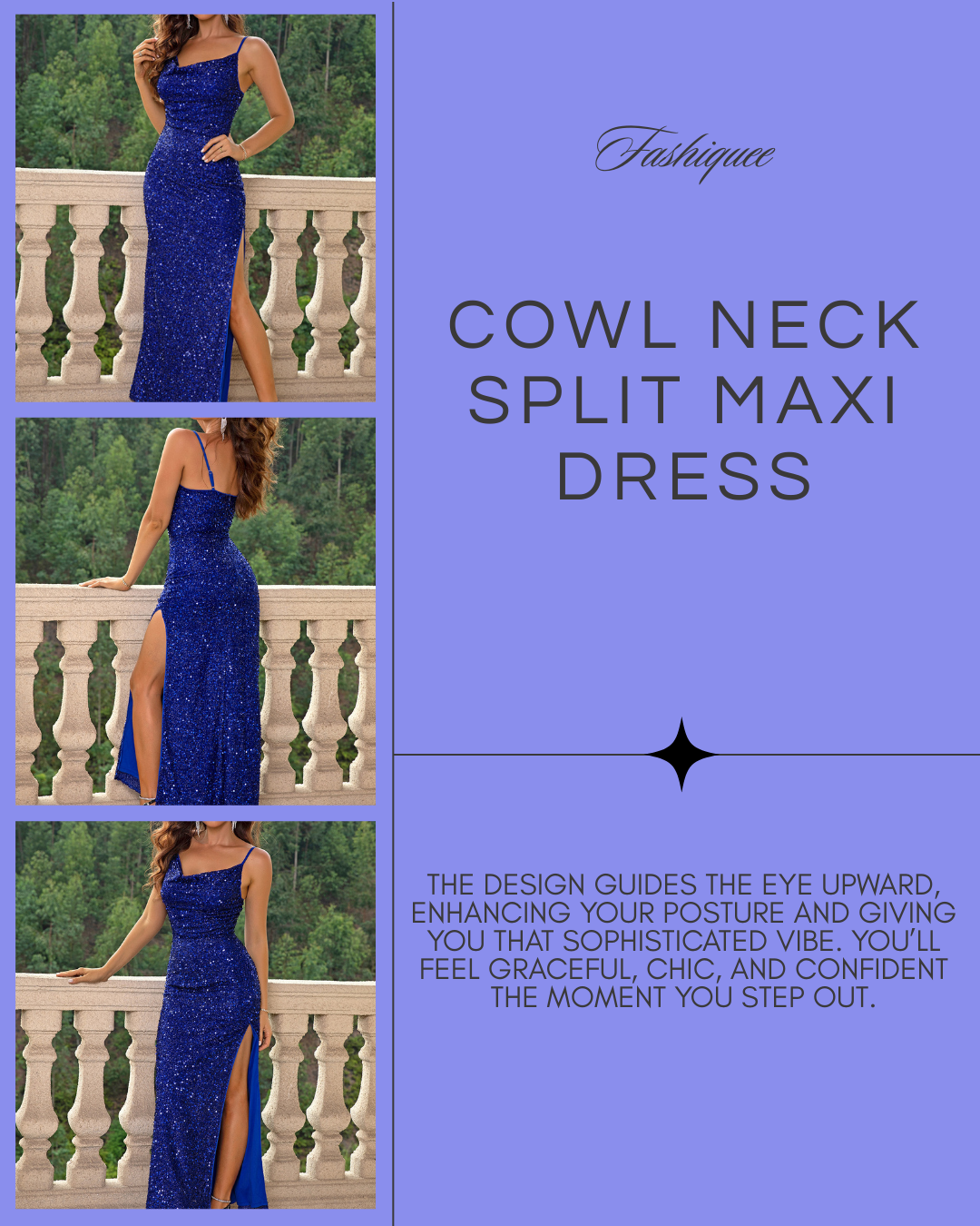 Why choose a Cowl Neck Split Maxi Dress over a standard dress?